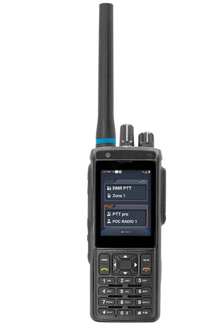 Radio portátil táctico PoC network 4G, cumple con estándares militares.